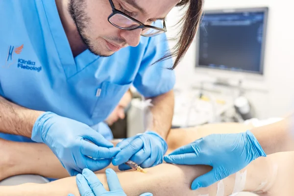Pajączki naczyniowe u kobiet Klinika Flebologii / Blog flebologiczny / Pajączki naczyniowe u kobiet Niewydolność żylna kończyn dolnych 07.10.2024 5 min Spis treści Pajączki naczyniowe u kobiet – dlaczego się tworzą, jak się objawiają i jak je leczyć?Przyczyny powstawania pajączków naczyniowych u kobiet – jak uchronić się przed problemem?Pajączki naczyniowe – i co dalej?Leczenie pajączków naczyniowych, czyli jak powstrzymać proces chorobowy? Pajączki naczyniowe u kobiet – dlaczego się tworzą, jak się objawiają i jak je leczyć? Pajączki naczyniowe u kobiet, zwane fachowo telangiektazjami, to jedna z pierwszych i zarazem najczęstszych przyczyn wizyt w Klinice Flebologii. Problem występowania pajączków naczyniowych zazwyczaj bywa nieprawidłowo traktowany jako defekt natury estetycznej. Tak niestety do tego problemu podchodzą również lekarze. Wychodzenie pajączków naczyniowych (nie jest to pękanie naczynek!) to najczęściej jeden z pierwszych objawów (zwiastun) postępującej choroby żylnej. Pajączki naczyniowe to problem, który dotyka zdecydowanie częściej płci żeńskiej (około 50% kobiet w wieku 40-60 lat w stosunku do 25% mężczyzn w wieku 30-60 lat). Są to skupiska poszerzonych, usytuowanych blisko pod skórą naczynek krwionośnych. Ich barwa waha się od czerwieni, poprzez odcienie różu po ciemnofioletową, sinoniebieskawą. Skupiska te przybierają także różne kształty. Mogą mieć układ gwieździsty lub przypominający wachlarz, niekiedy układają się również mniej regularnie. Pajączki naczyniowe to jedna z najpowszechniejszych i najwcześniejszych manifestacji zaburzeń w układzie żylnym, pojawiająca się głównie na skórze kończyn dolnych (ud i podudzi). Ponieważ pajączki naczyniowe wyglądają niegroźnie i nie wywołują dolegliwości bólowych często nie zwraca się na nie uwagi. Pamiętaj jednak, że w istocie pajączki naczyniowe to zazwyczaj szczyt góry lodowej. Jeżeli pojawiają się na Twoich nogach natychmiast wybierz się do lekarza flebologa, który z całą pewnością wykona Ci USG Doppler żył kończyn dolnych, a nierzadko również USG Doppler żył miednicy i określi, gdzie leży źródło problemu. Przyczyny powstawania pajączków naczyniowych u kobiet – jak uchronić się przed problemem? Pajączki naczyniowe jako jedna ze składowych niewydolności żylnej (najdrobniejsza i najpłycej położona) powstają wskutek zwiększonego ciśnienia w łożysku żylnym. Do ich powstawania dochodzi również z powodu nieprawidłowego oddziaływania hormonów. Jest to szczególnie dobrze widoczne w ciąży u kobiet, u Pań z obrzękiem tłuszczowym czy u osób z nieprawidłowym wydzielaniem estrogenów. Skłonność do wychodzenia pajączków naczyniowych jest częściowo dziedziczna, często narażone są na nią osoby o jasnej karnacji. Trudno wygrać z genami, więc zapewnienie sobie idealnej profilaktyki w przypadku tej dolegliwości jest czasami zwyczajnie niemożliwe. To co z całą pewnością możesz jednak zrobić, to unikanie czynników zwiększających ryzyko wystąpienia telangiektazji i jak najszybsze rozpoczęcie leczenia, jeżeli wystąpi u Ciebie problem z naczyniami żylnymi. Nadużywanie alkoholu, przegrzewanie nóg, otyłość czy źle dobrana terapia hormonalna to coś, na co powinny uważać osoby z predyspozycjami do powstawania pajączków. Dodatkowo należy unikać ciasnych spodni, niewygodnego obuwia na szpilkach lub butów, które mogą okazać się zbyt ciasne. Kiedy siedzisz często zmieniaj pozycję i staraj się też nie zakładać nogi na nogę. Ponieważ powstawanie pajączków wiąże się zawsze z zaburzeniami krążenia w układzie naczyń krwionośnych, wszystkie czynności, które powodują dodatkowe obciążenie kończyn dolnych są niewskazane. Warto postawić także na aktywność fizyczną, jednak należy mieć na względzie, że niektóre ćwiczenia, takie jak jazda na nartach czy podnoszenie ciężarów mogą dodatkowo przyczynić się do rozwoju dolegliwości. Dlatego wybieraj takie zajęcia sportowe, które nie zaszkodzą Twojemu zdrowiu (np. pływanie lub aktywne chodzenie). Zadbaj również o luźne ubrania i pełnowartościową dietę bogatą w witaminy. Pajączki naczyniowe – i co dalej? Jeżeli wystąpi u Ciebie problem powiększających się telangiektazji, od razu udaj się do lekarza, który jest specjalistą w dziedzinie chorób żył i najlepiej doradzi Ci, jak postępować w Twoim indywidualnym przypadku. Tym zajmuje się współczesna flebologia. Lekarz flebolog w czasie pierwszej wizyty zawsze wykonuje wstępne badanie ultrasonograficzne z wykorzystaniem technik dopplerowskich. Pamiętaj, że pojawiające się na skórze nieleczone pajączki naczyniowe stanowić mogą objaw przewlekłej niewydolności żylnej. Często pajączki naczyniowe są leczone w gabinetach medycyny estetycznej. Trafiają tam pacjenci bez prawidłowo wykonanej diagnostyki obrazowej. Lekarz medycyny estetycznej lub dermatolog przy użyciu lasera przezskórnego próbują zwalczyć problem, najczęściej bezskutecznie. Leczenie pajączków naczyniowych, czyli jak powstrzymać proces chorobowy? W czasie wizyty flebologicznej usłyszysz wszystko, co musisz wiedzieć, by powstrzymać postęp niewydolności naczyń żylnych. Jeżeli udasz się do flebologa odpowiednio wcześnie, to szansa na spowolnienie choroby jest bardzo duża. Po przeprowadzeniu odpowiednio dobranej diagnostyki obrazowej, lekarz decyduje jak należy postąpić. W obrębie kończyn dolnych najczęściej używana jest skleroterapia, a konkretnie jej odmiana zwana mikroskleroterapią. W czasie mikroskleroterapii zamykane są poszerzone naczynka a także naczynia je zasilająca, bądź modyfikowane są te, które nie dają rady odprowadzać krwi ze skóry. W czasie wykonywania zabiegu skleroterapii kompresyjnej do wnętrza nieprawidłowych żyłek podawany jest tzw. sklerozant, czyli środkek chemicz
