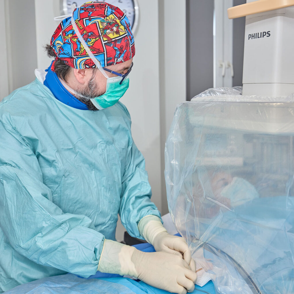 Zabiegi żylne Klinika Flebologii / Usługi / Zabiegi żylne Zabiegi wewnątrzżylne to procedury małoinwazyjne, które poza wysokim profilem bezpieczeństwa, gwarantują najwyższą skuteczność spośród wszystkich metod leczenia chorób żył dostępnych na rynku. Współczesna flebologia oferuje szereg małoinwazyjnych metod leczenia chorób żył. Metody wewnątrzżylne stanowią bezpieczną i skuteczną alternatywę dla klasycznej chirurgii żylnej. Zabiegi tego typu wykonywane są w znieczuleniu miejscowym (zwykle tumescencyjnym), bez konieczności wykonywania rozległych nacięć skórnych, co przekłada się na minimalną traumatyzację tkanek, szybszy powrót do zdrowia oraz lepszy efekt kosmetyczny. W przeciwieństwie do tradycyjnego strippingu żył, procedury wewnątrzżylne przeprowadzane są w warunkach ambulatoryjnych. Pacjent może opuścić Klinikę tego samego dnia i szybko wrócić do codziennych aktywności. Co więcej, nowoczesne techniki charakteryzują się wysoką skutecznością przy znacznie mniejszym ryzyku powikłań. Ultrasonograf Canon (Toshiba) – Klinika Flebologii Embolizacja żylna – Pracownia Naczyniowa Kliniki Flebologii Wskazania flebologiczne do stosowania metod wewnątrzżylnych Zabiegi wewnątrzżylne znajdują zastosowanie w leczeniu szerokiego spektrum schorzeń układu żylnego. Do najczęstszych patologii układu żylnego leczonych tymi metodami zaliczamy: niewydolność żylną kończyn dolnych (C2 – żylaki); powikłaną niewydolność żylną kończyn dolnych (C4-C6); nawrotową chorobę żylną; niewydolność żylną miednicy; żylne zespoły uciskowe; malformacje żylne; zakrzepicę żylną; zespół pozakrzepowy. Zabieg embolizacji żylnej w Pracowni Naczyniowej Kliniki Flebologii w Warszawie. Dr n. med. Cezary Szary Metody termiczne versus nietermiczne W Klinice Flebologii stosujemy zarówno metody nietermiczne, jak i termiczne w leczeniu choroby żylnej kończyn dolnych. Wybór metody lub kombinacji metod (podejście hybrydowe) uzależniony jest od indywidualnych potrzeb Pacjenta i charakteru schorzenia żylnego. Metody nietermiczne skleroterapia igłowa i jej odmiany (płynowa, z użyciem mikropiany, piankowa); skleroterapia cewnikowa prosta; mechano-chemiczna ablacja żył (MOCA); klejenie żył (VenaSeal, VariClose, VenaBlock, VeinOff). Głównymi zaletami metod nietermicznych są brak konieczności stosowania znieczulenia tumescencyjnego oraz minimalne ryzyko uszkodzenia okolicznych tkanek. Metody termiczne laserowa ablacja wewnątrzżylna (EVLA); ablacja termiczna falami radiowymi (RFA); ablacja parą wodną (SVS). Termiczne techniki ablacyjne wykorzystują energię cieplną do zamknięcia niewydolnego segmentu żylnego. Charakteryzują się bardzo wysoką skutecznością długoterminową. Żylaki kończyn dolnych – metody leczenia Laserowa ablacja wewnątrzżylna (EVLA) Laserowa ablacja wewnątrzżylna (EVLA) stanowi złoty standard w małoinwazyjnym leczeniu niewydolności żylnej. Obecnie najskuteczniejsze jest światło laserowe o długości fali 1470 nm. Jest ono szczególnie dobrze absorbowane przez wodę w ścianie żyły, co prowadzi do kontrolowanego uszkodzenia i zamknięcia światła naczynia. Ablacja laserowa wykonywana jest w tumescencyjnym znieczuleniu miejscowym, pod kontrolą aparatury USG wysokiej rozdzielczości. Nowoczesne systemy laserowe z włóknami radialnymi 2-pierścieniowymi zapewniają równomierne rozprowadzenie energii, minimalizując ryzyko perforacji ściany żyły i powikłań termicznych. Skuteczność EVLA sięga 95-98% w obserwacji długoterminowej, co czyni ją jedną z najbardziej niezawodnych metod leczenia żylaków. W badaniach klinicznych (także tych przeprowadzonych w Klinice Flebologii) wykazano, że odsetek rekanalizacji (ponownego udrożnienia) zamykanych żył przy użyciu EVLA jest znacząco niższy niż w przypadku klasycznej operacji chirurgicznej, klejenia żył czy skleroterapii. Co więcej, w przypadku wystąpienia nawrotu choroby żylnej możliwe jest bezpieczne powtórzenie zabiegu. Zabieg laserowej ablacji wewnątrzżylnej systemem ELVeS 1470 nm wykonywany w Klinice Flebologii. Embolizacja żylna i jej rola w leczeniu przyczynowym Embolizacja żylna to przełomowa metoda w leczeniu niewydolności żylnej miednicy – najczęstszej przyczyny niewydolności żylnej kończyn dolnych i zjawiska powodującego objawy zespołu przekrwienia biernego miednicy mniejszej oraz powstawanie żylaków okolic intymnych. Zabiegi embolizacyjne polegają na kontrolowanym i precyzyjnym zamknięciu niewydolnych żył przy użyciu specjalnych spiral lub środków obliterujących, wprowadzanych do światła naczynia pod kontrolą radiologiczną. W kontekście leczenia przyczynowego, embolizacja żylna odgrywa kluczową rolę w następujących sytuacjach klinicznych: żylnych zespołach uciskowych – w połączeniu ze stentowaniem żył lub wenoplastyką żylną umożliwia kompleksowe leczenie zaburzeń hemodynamicznych; niewydolności żylnej miednicy z powodu nadmiernego poszerzenia naczyń – poprzez zamknięcie niewydolnych żył jajnikowych i biodrowych wewnętrznych, eliminuje źródło patologicznego refluksu i przeciążeniowej niewydolności zstępującej; nawrotowej chorobie żylnej – pozwala zlikwidować nieprawidłowe połączenia żylne w miednicy (przecieki żylne), które często są przyczyną nawrotów. Główne zalety embolizacji żylnej to: możliwość dotarcia do trudno dostępnych anatomicznie obszarów układu żylnego; wysoka skuteczność w likwidacji przyczyn refluksu żylnego; minimalnie inwazyjny charakter zabiegu przeprowadzanego w płytkiej sedacji; szybki powrót do normalnej aktywności życiowej (5-10 dni). Zakres cenowy Flebologia Małoinwazyjne zabiegi żylne wykonywane pod kontrolą USG echoskleroterapia cewnikowa żylaków wspomagana tumescencją (jedna noga) ** 1500 zł Umów wizytę echoskleroterapia iniekcyjna żylaków wspomagana tumescencją (j