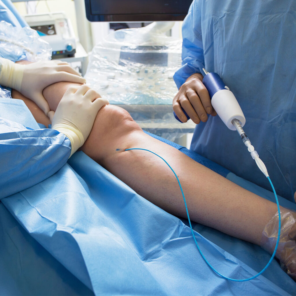 Klejenie żył Klinika Flebologii / Usługi / Zabiegi żylne / Klejenie żył Wprowadzenie Kluczowe informacje Opis zabiegu Laserowe zamykanie żył Skleroterapia kompresyjna Wprowadzenie Klejenie żylaków (ang. endovenous adhesive ablation lub cyanoacrylate closure) to innowacyjna, małoinwazyjna metoda leczenia niewydolności żylnej, która miała zrewolucjonizować podejście do leczenia żylaków kończyn dolnych. Z ponad 10-letniej już perspektywy stosowania kleju przez zespół Kliniki Flebologii w leczeniu niewydolności żylnej kończyn dolnych, wiemy już, że raczej nie zrewolucjonizuje.Klejenie żył polega na na precyzyjnym zamknięciu chorej żyły za pomocą specjalnego kleju tkankowego cyjanoakrylowego, wprowadzanego bezpośrednio do jej wnętrza pod kontrolą ultrasonograficznej (USG) i przy użyciu cewnika lub igły. Technika ta miała stanowić atrakcyjną alternatywę dla tradycyjnych metod chirurgicznych i termicznych (EVLA, EVRF), oferując Pacjentom komfort, bezpieczeństwo i szybki powrót do codziennych aktywności Historia pierwszego systemu do zamykania klejem tkankowym żylaków o nazwie VenaSeal zaczęła się w Europie w 2011 r. System VenaSeal, wprowadzony na rynek przez amerykańską firmę Sapheon, a następnie przejęty przez duży amerykański koncern Medtronic, to najstarszy tego typu system na świecie. System VenaSeal, oparty na kleju n-butylocyjanoakrylowym (nBCA), umożliwił leczenie żylaków bez konieczności stosowania znieczulenia tumescencyjnego, co było przełomem ówczesnej flebologii. Klejenie żył w Polsce Lekarze zespołu Kliniki Flebologii odegrali kluczową rolę we wdrożeniu tej nowatorskiej metody leczenia żył w Polsce. Jako pierwsi w kraju, już w 2013 roku, wykonywali zabiegi klejenia żylaków z użyciem systemu VenaSeal. To właśnie dzięki ich zaangażowaniu, wiedzy i doświadczeniu polscy Pacjenci uzyskali dostęp do tej nowoczesnej terapii. Flebolodzy Tomasz Grzela i Cezary Szary wykonali pierwsze w Polsce zabiegi przy użyciu systemu VenaSeal, a następnie współpracowali z producentami systemów do klejenia żył VariClose i VenaBlock (klej drugiej generacji), wprowadzając te technologie na polski rynek. Klinika Flebologii stała się ośrodkiem referencyjnym w zakresie klejenia żylaków, a nasi lekarze zdobyli rozległe doświadczenie w stosowaniu tej metody leczenia choroby żylnej. Klejenie żylaków systemem VenaBlock Klejenie żył versus laserowa ablacja żył przy użyciu lasera? Klejenie żylaków to technika nietermiczna (ang. non-thermal, non-tumescent vein closure), co oznacza, że nie wykorzystuje ona energii cieplnej do zamknięcia niewydolnej żyły. W odróżnieniu od laseroterapii (EVLA) czy radioablacji (EVRF), nie ma tu konieczności stosowania znieczulenia tumescencyjnego, które wymaga wielokrotnych nakłuć i podania dużych objętości znieczulenia miejscowego. Zabieg klejenia z założenia miał być mniej inwazyjny od zabiegów termicznych, miał też być dużo krótszy. Początkowo klejenie żył wykorzystywano głównie do leczenia niewydolnych pni żylnych, ale z czasem okazało się, że jest to technika bardzo wszechstronna, znajdująca zastosowanie w terapii różnorodnych schorzeń żylnych. Choć klejenie żylaków jest skuteczną i cenioną metodą, to w Klinice Flebologii podkreślamy, że nie zawsze jest ona najskuteczniejsza. Badania porównawcze przeprowadzone w naszej placówce, zestawiające systemy VenaBlock i technikę ablacji laserowej przy użyciu systemu ELVeS 1470 nm, wykazały wyższą skuteczność lasera wewnątrzżylnego w dłuższej obserwacji, szczególnie to widać w ponad 5-letniej ocenie Pacjentów z niewydolnością żylną kończyn dolnych. Z naszych obserwacji i badań nad układem żylnym wynika, iż w leczeniu niewydolności żylnej kluczowa jest strategia i metodologia a nie sama metoda jako taka. Najważniejsze jest, by w leczeniu niewydolności żylnej terapię zaczynać od leczenia przyczyny (najczęściej jest nią jakaś postać niewydolności żylnej miednicy), a nie od objawu (tj. zamykania pojedynczego żylaka czy pnia żylnego na nodze). W leczeniu choroby żylnej wykorzystujemy obecnie różne metody i techniki zabiegowe i wiemy już, że nie ma jednej cudownej metody na wszystko. Najistotniejsze jest, by leczyć Pacjenta zgodnie z zasadami hemodynamiki i maksymalnym zaoszczędzeniem głównych pni naczyniowych na nogach. Przygotowanie do zabiegu klejenia żył metodą iniekcyjną. Klinika Flebologii. Kluczowe informacje dotyczące zabiegu żylnego Rodzaj znieczulenia jedynie miejscowe w okolicy dostępu naczyniowego Czas trwania zabiegu 15-45 minut Leczenie główne pnie żylne, żylaki, żyły przeszywające, krążenie oboczne, malformacje żylne Ryzyko powikłań niewielkie Aktywność fizyczna szybki powrot do codziennych aktywności Rekonwalescencja do 7-14 dni (okres noszenia pończochy pozabiegowej) Co można leczyć przy użyciu kleju tkankowego do żył? Metoda klejenia żył znajduje zastosowanie w leczeniu szerokiego spektrum schorzeń żylnych. Do najczęstszych zaliczamy: niewydolność głównych pni żylnych; żylaki kończyn dolnych o różnej średnicy; żylaki atypowe powstałe poza osią głównych pni żylnych;. niewydolne żyły przeszywające (tzw. perforatory); nawrotową chorobę żylną, w tym żylaki nawrotowe; malformacje żylne; żylaki okolic intymnych (bardzo rzadko). Zrekanalizowana żyła odpiszczelowa po zabiegu klejenia u Pacjentki, która zgłosiła się do Kliniki Flebologii 9 miesięcy po zabiegu klejenia. W Klinice Flebologii w leczeniu Pacjentów z niewydolnością żylną stosujemy przede wszystkim podejście hybrydowe, łącząc klejenie z innymi metodami, takimi jak: skleroterapia czy mikrochirurgia. Pozwala to osiągnąć optymalne rezultaty w leczeniu naszych Pacjentów. Zakres cenowy Flebologia Małoinwazyjne zabiegi żylne wykonywane pod kontrolą USG klejenie żylaków na jednej nodze (klej podawa
