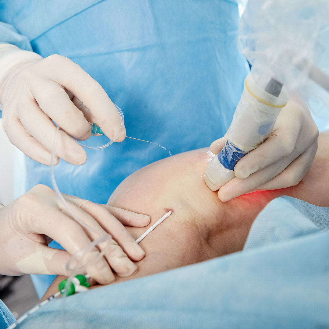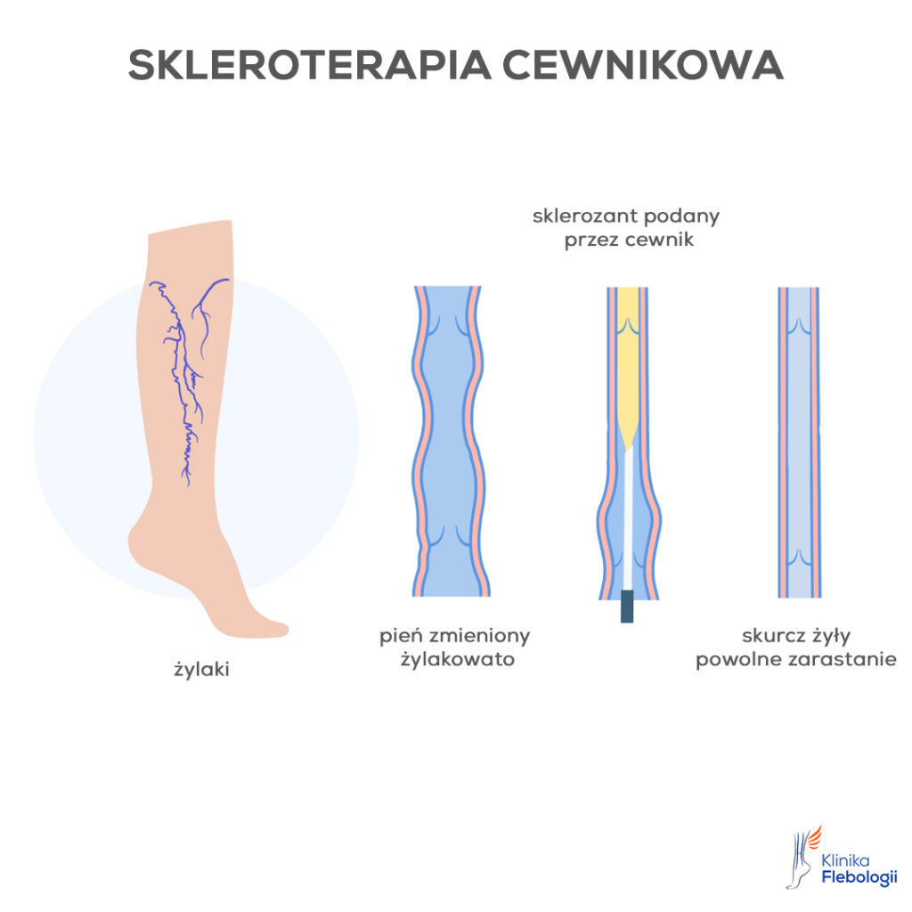 Skleroterapia cewnikowa Klinika Flebologii / Usługi / Zabiegi żylne / Skleroterapia kompresyjna / Skleroterapia cewnikowa Wprowadzenie Kluczowe informacje Opis zabiegu Laserowe zamykanie żył Klejenie żył Wprowadzenie Skleroterapia cewnikowa to zaawansowana, małoinwazyjna metoda leczenia niewydolności żylnej, która zyskała uznanie dzięki swojej precyzji i skuteczności. Polega na wprowadzeniu cewnika (bardzo cienkiej rurki) do wnętrza chorej żyły, a następnie, po jej spozycjonowaniu pod kontrolą aparatury USG, podaniu środka obliterującego, zwanego sklerozantem. Sklerozant aplikowany jest zawsze w postaci piany. Ta technika pozwala na precyzyjne podanie sklerozantu w bezpośredniej bliskości ściany naczyniowej, co zwiększa siłę rażenia i skuteczność obliteracji. Zwykle przy tego typu zabieg posiłkujemy się jeszcze tzw. tumescencją, która kurczy dodatkowo i opróżnia z krwi, zamykane naczynie żylne. W przeciwieństwie do tradycyjnej skleroterapii igłowej, skleroterapia cewnikowa umożliwia bardziej kontrolowane i precyzyjne podanie leku, minimalizując ryzyko jego niekontrolowanego rozprzestrzenienia i potencjalnych powikłań. Historia skleroterapii sięga XIX wieku, ale prawdziwy przełom nastąpił w latach 90-tych XX wieku, kiedy to opracowano technikę podawania sklerozantów w postaci piany i mikropiany. Ta innowacja znacząco zwiększyła skuteczność tego typu zabiegów. Sklerozant w postaci spienionej lepiej wypełnia naczynie, lepiej je kurczy i ma dłuższy kontakt ze ścianą żyły, co prowadzi do jej trwalszego uszkodzenia, zarośnięcia i zamknięcia. Mechano-chemiczna ablacja wewnątrzżylna Szczególnym wariantem skleroterapii cewnikowej jest tzw. mechano-chemiczna ablacja wewnątrzżylna (ang. Mechanochemical Endovenous Ablation, MOCA). Ta technika, rozwijana od początku XXI wieku, łączy w sobie działanie chemiczne sklerozantu z mechanicznym uszkodzeniem śródbłonka żyły, co zwiększa efektywność zabiegu. W MOCA wykorzystuje się specjalne systemy cewnikowe. Najbardziej rozpowszechnione to: Flebogrif i Clarivein, które poprzez swoje unikalne mechanizmy działania – obracające się elementy lub haczyki – mechanicznie uszkadzają wewnętrzną ścianę naczynia, ułatwiając wnikanie sklerozantu i zamknięcie światła żyły. Flebogrif to system, który zyskał popularność dzięki swojej uniwersalności i bezpieczeństwu, natomiast Clarivein jest znany ze swojej skuteczności i minimalnej inwazyjności. Mechanizm działania MOCA opiera się na jednoczesnym drażnieniu i uszkadzaniu śródbłonka naczyniowego, działaniu naczynioskurczowym oraz jednoczasowym podawaniu spienionego sklerozantu. W porównaniu do termoablacji (laserowej – EVLA czy przy użyciu fal radiowych – EVRF), MOCA jest mniej bolesna i często nie wymaga znieczulenia tumescencyjnego, chyba że używamy go w celu zmniejszenia światła naczynia poddawanego ablacji. System Flebogrif (jeden z rodzajów MOCA) System ELVeS 1470 nm (EVLA) Skuteczność skleroterapii cewnikowej, w tym MOCA, została potwierdzona w licznych badaniach. Jest ona jednak dość wysoka jedynie w pierwszych 2 latach od wykonania zabiegu. Później jednak spada, dlatego też w Klinice Flebologii preferujemy metody ablacji termicznej, takie jak laserowa ablacja wewnątrzżylna przy użyciu systemu ELVeS. Z naszych wieloletnich badań wynika, iż jest to dużo skuteczniejsze leczenie. Nie zmienia to faktu, że skleroterapia cewnikowa jest metodą bezpieczną i dość skuteczną, także tańszą niż metody termoablacyjne i na pewno stanowi alternatywę dla tradycyjnych metod leczenia żylaków. Co można leczyć przy użyciu skleroterapii cewnikowej? Skleroterapia cewnikowa ma dość szerokie zastosowanie w leczeniu niewydolności żylnej, także w leczeniu niewydolności żylnej miednicy (tam stosujemy jej pewne modyfikacje). W Klinice Flebologii wykorzystujemy ją najczęściej do leczenia: niewydolności żylnej pniowej; żylaków kończyn dolnych; nawrotowej choroby żylnej; żylaków zlokalizowanych w trudno dostępnych miejscach; niewydolności żylnej miednicy i wtórnych żylaków przymacicz; malformacji żylnych. Kluczowe informacje dotyczące zabiegu żylnego TYP ZABIEGU z wykorzystaniem USG, RTG, cewnika INWAZYJNOŚĆ małoinwazyjnie (2/5) OBSZAR ZABIEGOWY całe ciało ZESPÓŁ WYKONUJĄCY flebolog, radiolog interwencyjny, pielęgniarka asystująca CZAS TRWANIA 15-60 minut RODZAJ ZNIECZULENIA miejscowe. tumescencyjne BOLESNOŚĆ minimalna (1/5) RYZYKO POWIKŁAŃ od minimalnego do niskiego (1-2/5) REKONWALESCENCJA 5-14 dni Zakres cenowy Flebologia Małoinwazyjne zabiegi żylne wykonywane pod kontrolą USG echoskleroterapia cewnikowa żylaków wspomagana tumescencją (jedna noga) ** 1500 zł Umów wizytę obliteracja mechano-chemiczna żylaków systemem FLEBOGRIF (dwie nogi) *** 4200 zł Umów wizytę obliteracja mechano-chemiczna żylaków systemem FLEBOGRIF (jedna noga) *** 3200 zł Umów wizytę Opis zabiegu skleroterapii cewnikowej Zabieg skleroterapii cewnikowej w Klinice Flebologii przebiega według następującego schematu: konsultacja flebologiczna i badanie USG Doppler celem kwalifikacji do leczenia – Pacjent jest kwalifikowany do zabiegu na podstawie wywiadu, badania fizykalnego oraz badania USG Doppler żył; przygotowanie: skóra w miejscu wkłucia jest dezynfekowana, a Pacjent ustawiany jest w pozycji umożliwiającej dostęp do poddawanej leczeniu żyły;. znieczulenie: w zależności od potrzeb stosuje się znieczulenie miejscowe; dostęp do naczynia zakładany jest pod kontrolą sondy USG zmodyfikowaną techniką Seldingera; wprowadzenie cewnika: pod kontrolą aparatury USG wprowadza się cewnik do wnętrza chorej żyły (cięcie skóry nie jest wymagane); podanie sklerozantu: do uszkodzonej lub podrażnionej mechanicznie żyły podaje się spieniony sklerozant (np. polidokanol); w przypadku MOCA, równocześnie z podawaniem sklerozantu, cewnik mechanicznie